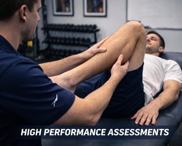 High performance assessments evaluate movement quality, strength, and load tolerance to establish objective baselines for rehabilitation, training, and return-to-play planning.
